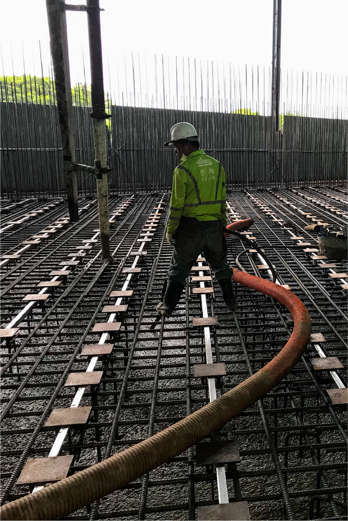 為原有擋土牆區域的改建工程,整體規劃將原結構轉化為實用性高的倉庫空間。施工團隊依據現地條件,特別強化牆壁與地面的結構設計,於混凝土中預埋鐵件,以固定保護鐵板,避免碎玻璃區造成混凝土損壞與鋼筋外露。